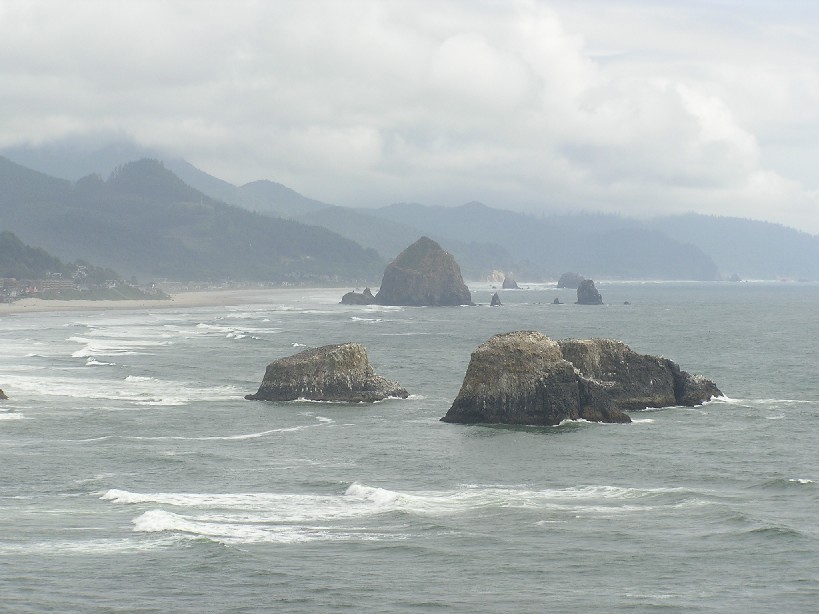 Haystack rock is not in the back, and no debris is around in the area. But, here it is.